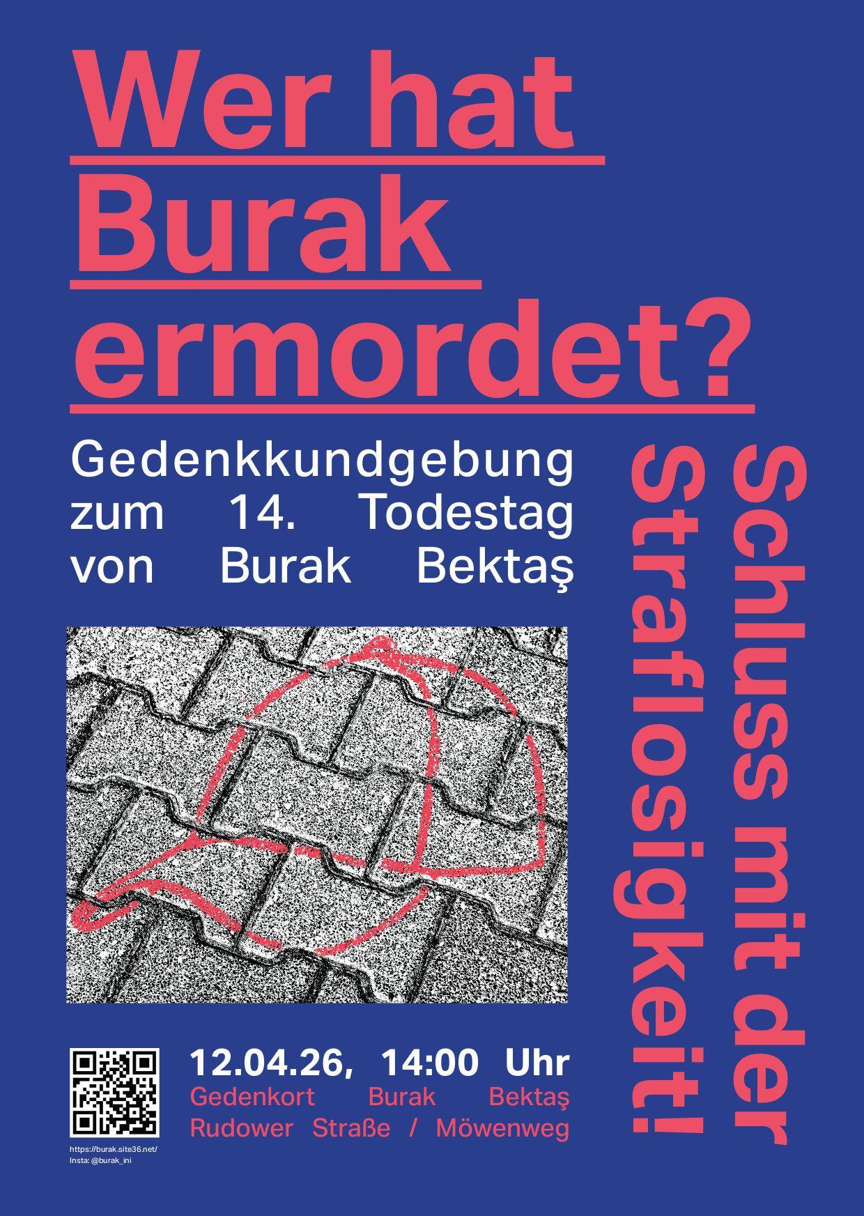 Sizleri Burak Bektaş İnisiyatifi Berlin olarak selamlıyoruz. Bugün aranızda olamadığımız için üzgünüz. Düşüncelerimizle ve kalplerimizle sizinleyiz.